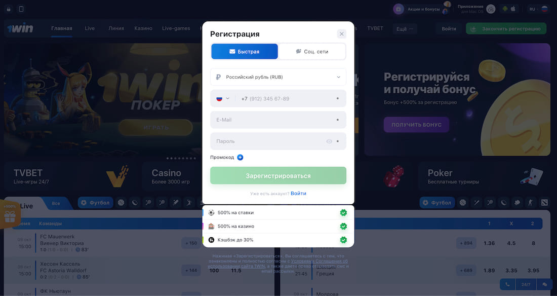 Как зарегистрироваться на официальном сайте БК 1win? Тут все оформлена максимально простым методом, который будет интуитивно понятен каждому гемблеру или даже новичку в мире азартных развлечений. Даже те пользователи, которые ранее не совершали ставки на официальном сайте, смогут быстро вникнуть в процесс регистрации и моментально подобрать удобный способ входа на сайт для ставок.